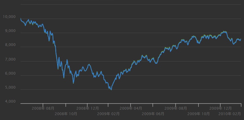 世界的な金融危機により、株式市場は大幅に下落しました。しかしその後は約1年かけて回復し、長期的には過去最高値を更新しています。