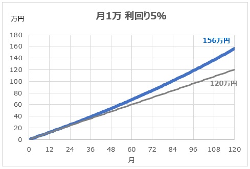 毎月1万円を10年間積立した場合